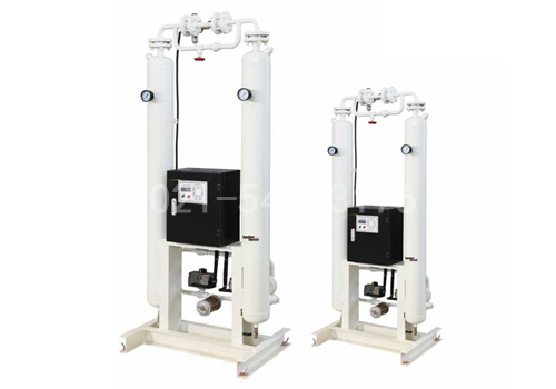 吸附式干燥机主体由两个充满吸附剂的吸附塔组成,压缩空气流过吸附塔时,